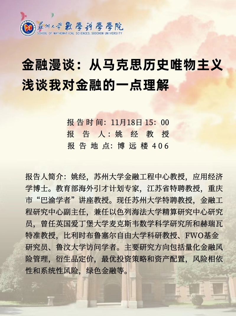 【讲座报告】金融漫谈:从马克思历史唯物主义浅谈我对金融的一点理解——姚经